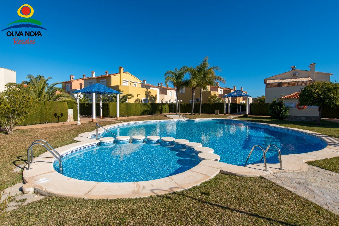 La excepcional ubicación de este adosado, a unos pasos del mar y muy cerca del Campo de Golf de Oliva Nova, lo convierte en un apacible paraíso.