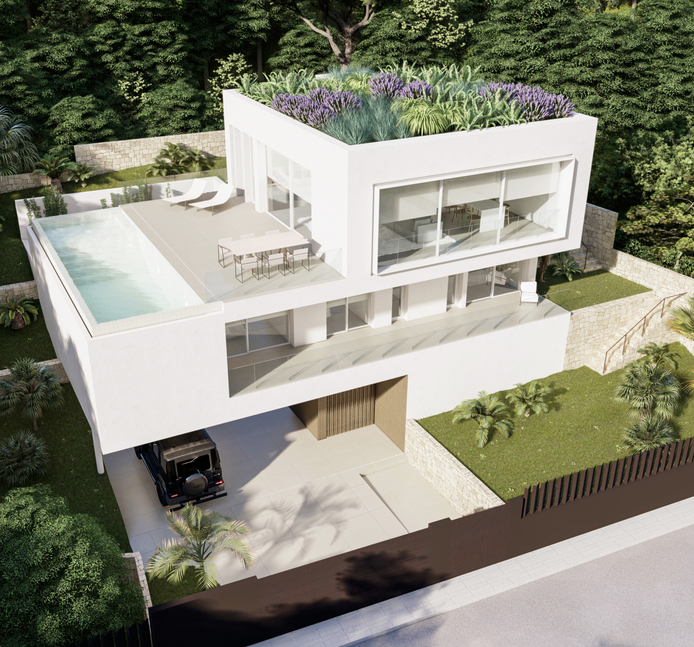 Explore esta villa exclusiva en la Colina de San Nicolás. Lujo y vistas al mar en tres niveles: sótano, planta baja y amplia planta alta con salón-comedor y cocina con isla.